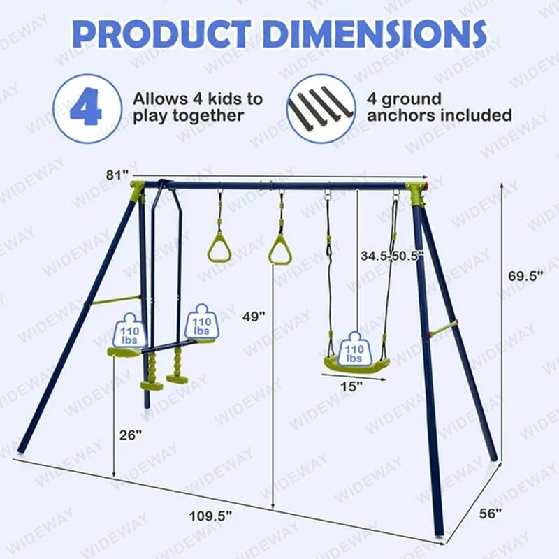 Овај 3-у-1 мултифункционални сет љуљашки за двориште пружа дивно место за децу да уживају у времену са пријатељима, што ће бити савршен поклон за рођенданске забаве или фестивале. Можете га поставити у двориште, башту, игралиште и још много тога према вашим различитим потребама. А ту су и јасна упутства за једноставну инсталацију. Штавише, сав потребан хардвер је означен како би се уштедело ваше време и труд. Добродошли у контакт са нама, ако желите да купите сетове за љуљање, бренд ВИДЕВАИ® је ваш први избор.