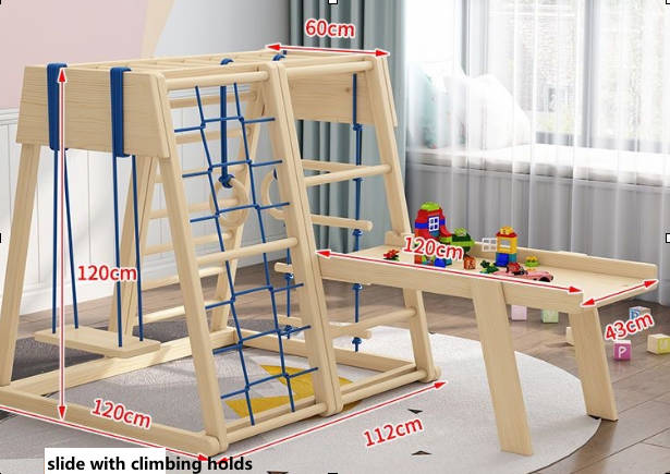 Креирајте мини авантуристички парк право у вашем дому са дрвеним пењањем наше деце! 🛝 Савршено за малишане и малу децу, овај играч укључује клизач, љуљашку и пењање на зид, нудећи сате активне забаве.