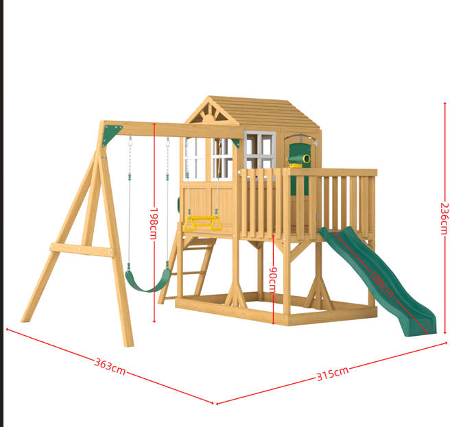 Без обзира да ли желите да охрабрите активније време на отвореном или створите разиграну оазу за своју децу, овај дрвени плејсет је фантастичан избор. Доноси кућиште игралишта, пружајући забавне и развојне користи.